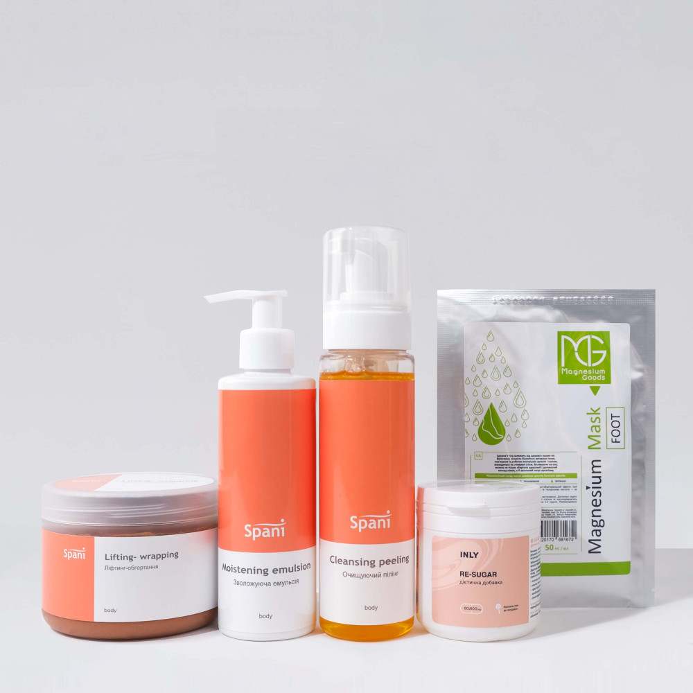 Гаряче ліфтинг обгортання з маслом кориці та гіркого апельсину. Композиція трьох видів косметичної глини, магній, екстракт ламінарії та цінні олії у складі обгортання перетворюють шкіру, роблячи її доглянутою і приємною як на вигляд, так і на дотик