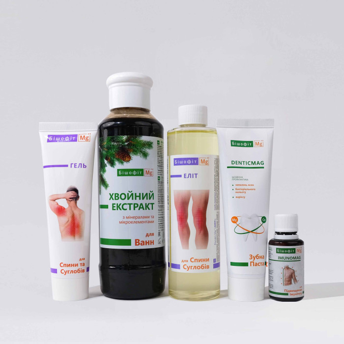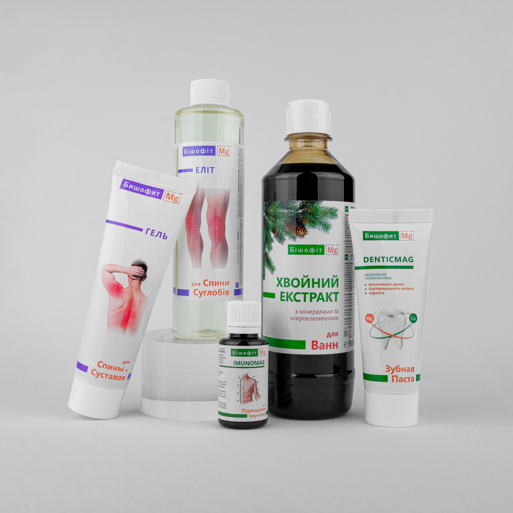 Даруйте комплект з топовими продуктами на основі бішофіту Полтавського родовища, доповнені природними екстрактами та ефірними оліями – для турботи і побажання здоров'я та довголіття всім членам сім'ї.