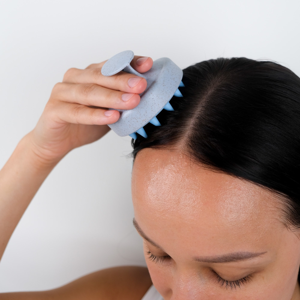 Компактна щітка з невеликою ручкою для миття і масажу шкіри голови.